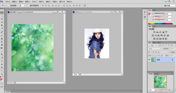 一:在PS中打開如圖所示的兩張圖片,任務(wù)是給美女換個(gè)背景。
