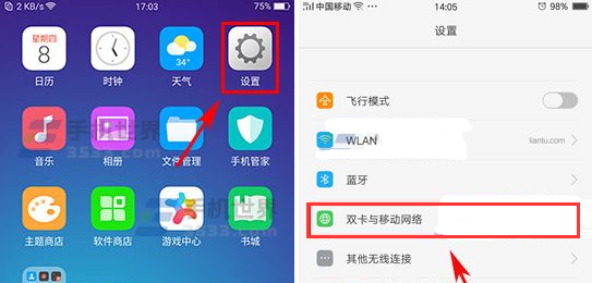 1、打開(kāi)手機(jī)【設(shè)置】菜單,打開(kāi)后點(diǎn)擊【雙卡與移動(dòng)網(wǎng)絡(luò)】選項(xiàng)。