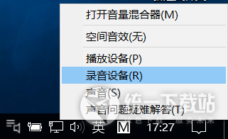 1)配置好變聲后,在桌面右下角的小喇叭上點擊右鍵,選擇錄音設備;