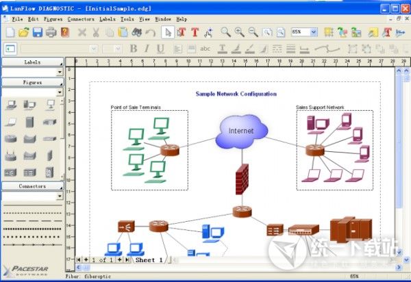pacestar lanflow是一款使用簡(jiǎn)單,功能強(qiáng)大的網(wǎng)絡(luò)拓?fù)鋱D制作軟件。網(wǎng)絡(luò)拓?fù)鋱D制作軟件(pacestar lanflow)和一般流程圖之類的軟件不同的是,可以讓使用者花費(fèi)不太多的力氣,就可以制作出EMF,WMF,BMP,JPG等格式的網(wǎng)絡(luò)拓?fù)鋱D。