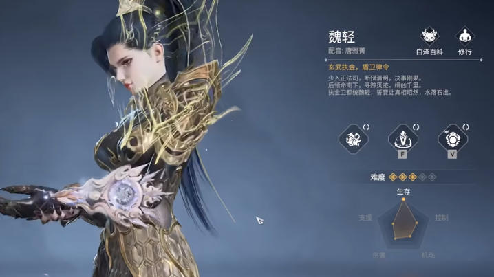魏輕是一個屬性偏向于生存的角色,操作門檻不低,但是基本了解玩法之后也能打出不錯的操作,首先是要注意他的技能,包括有F1技能執(zhí)金令、F2技能追捕、V1奧義玄武正法等,天賦的話可以帶紅色本源、紫色極陰、藍色極陽等,這些可以提高魏輕的全方面屬性。