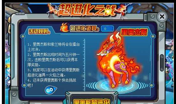 活動(dòng)【里奧杰斯VS布魯卡卡】里面捕獲,互動(dòng)內(nèi)容:為了拯救好友格林,布魯決意前往火焰山脊挑戰(zhàn)尤尼卡和里奧杰斯!8月10日13:00-14:00,見(jiàn)證布魯與里奧斯雙雙超進(jìn)化!點(diǎn)擊左上角時(shí)報(bào),選擇【里奧杰斯VS布魯卡卡】,然后點(diǎn)擊現(xiàn)在就去。